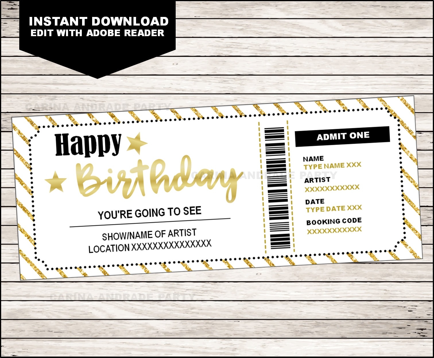 Concert Ticket Birthday Gift Printable Template Surprise Concert Show Band Gift Certificate EDITABLE Text INSTANT DOWNLOAD Etsy