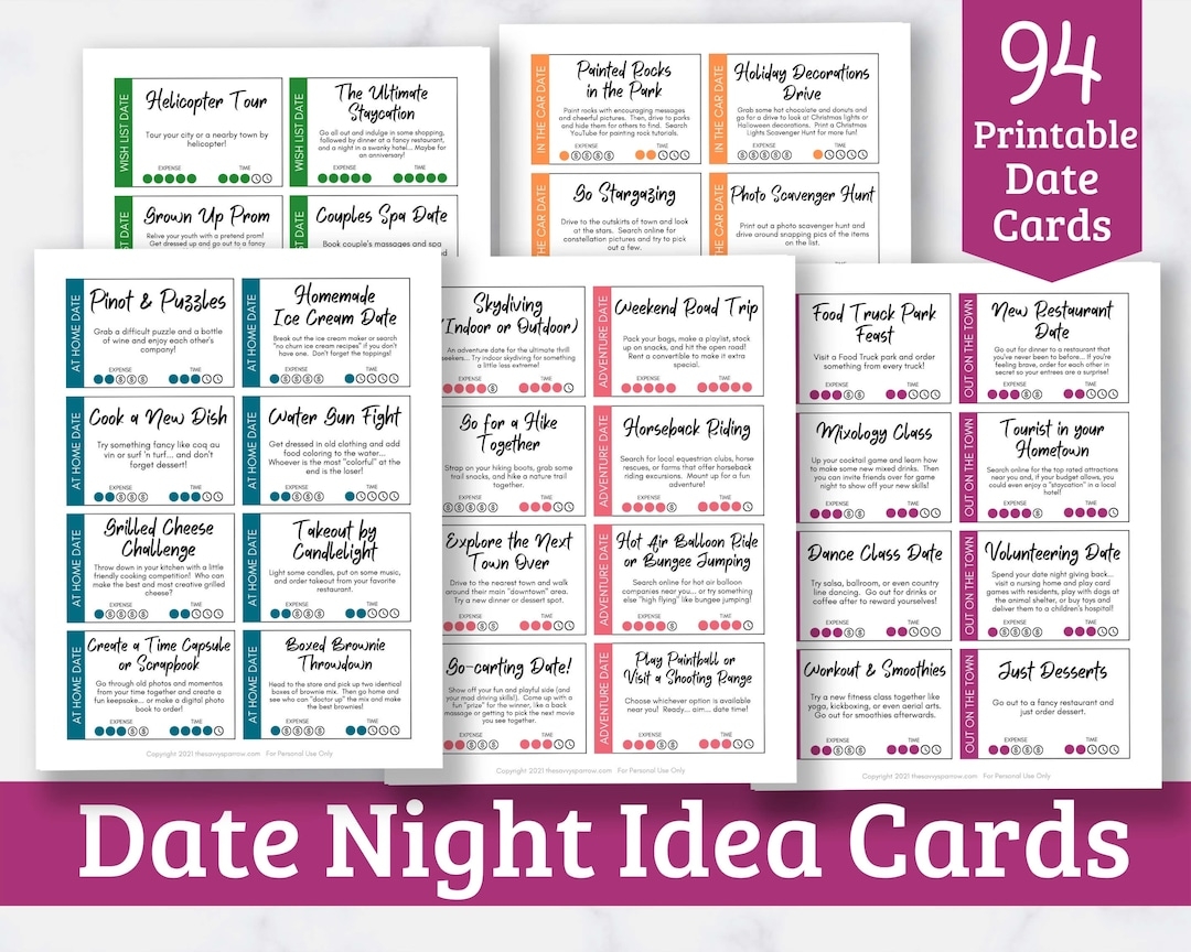 Date Night Idea Cards 94 Printable Date Cards With Awesome Date Ideas Etsy