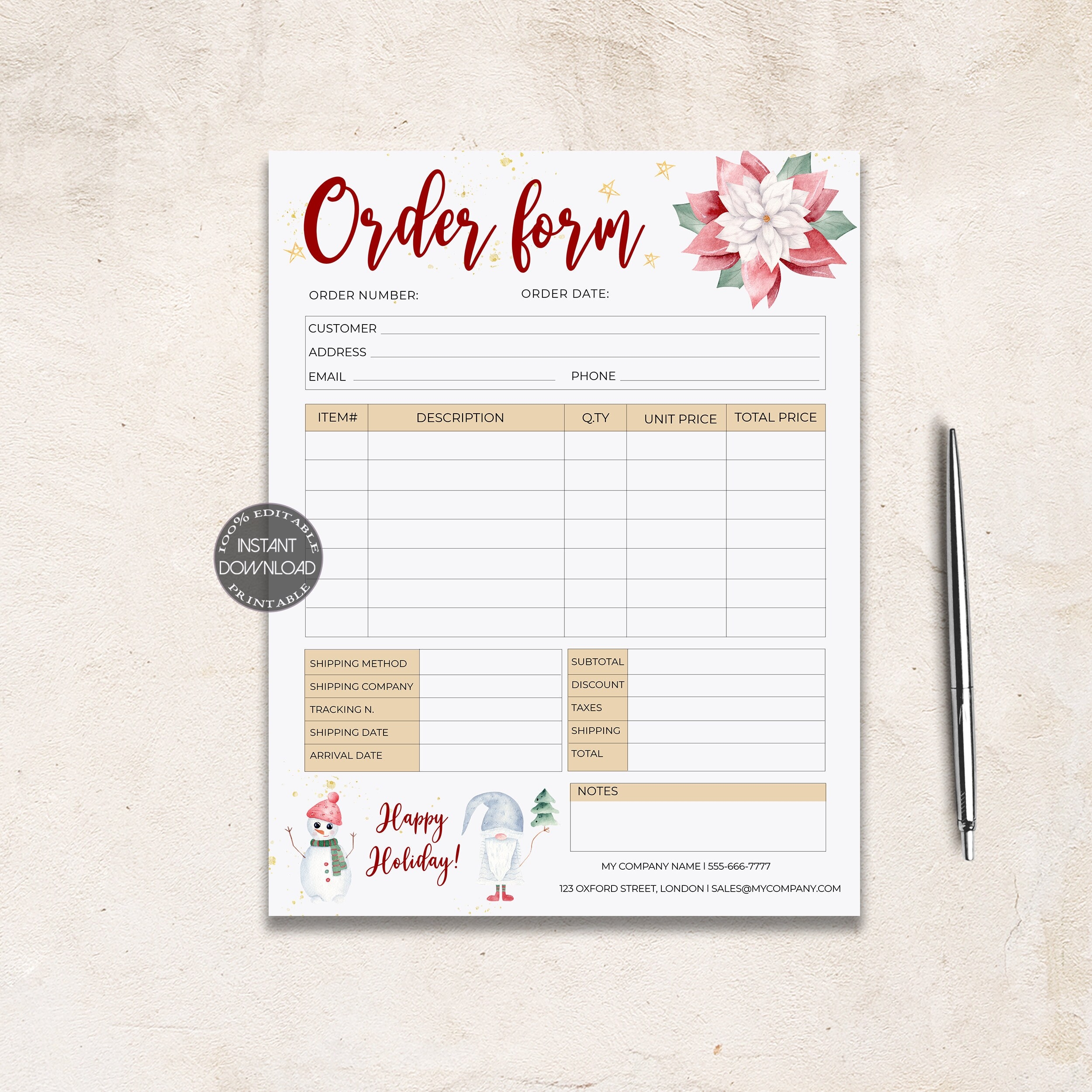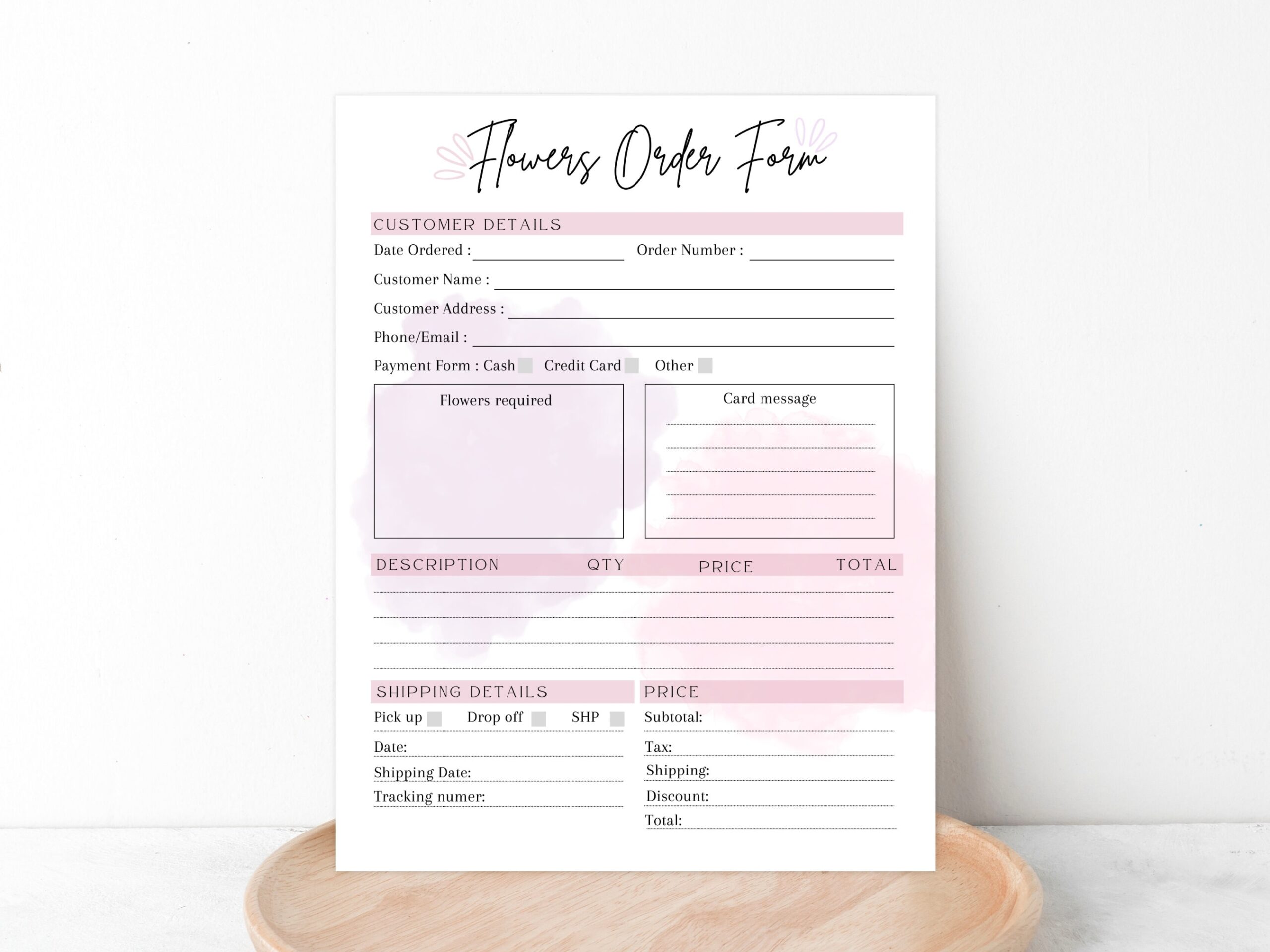 Florist Order Form Canva Template Editable Craft Inventory Client