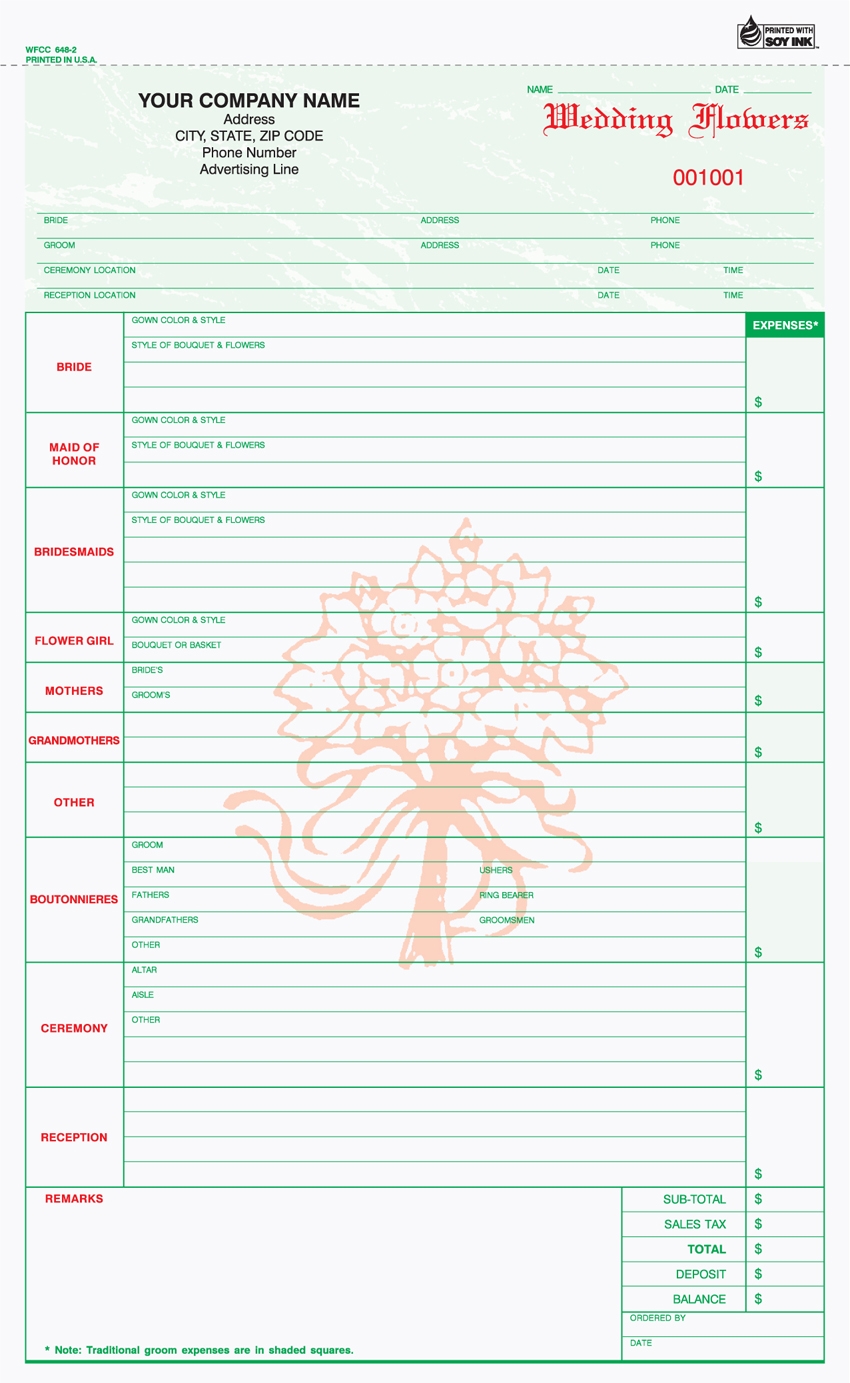 Printable Florist Order Form Flowers Order Form Template Florist Business Order Sheet