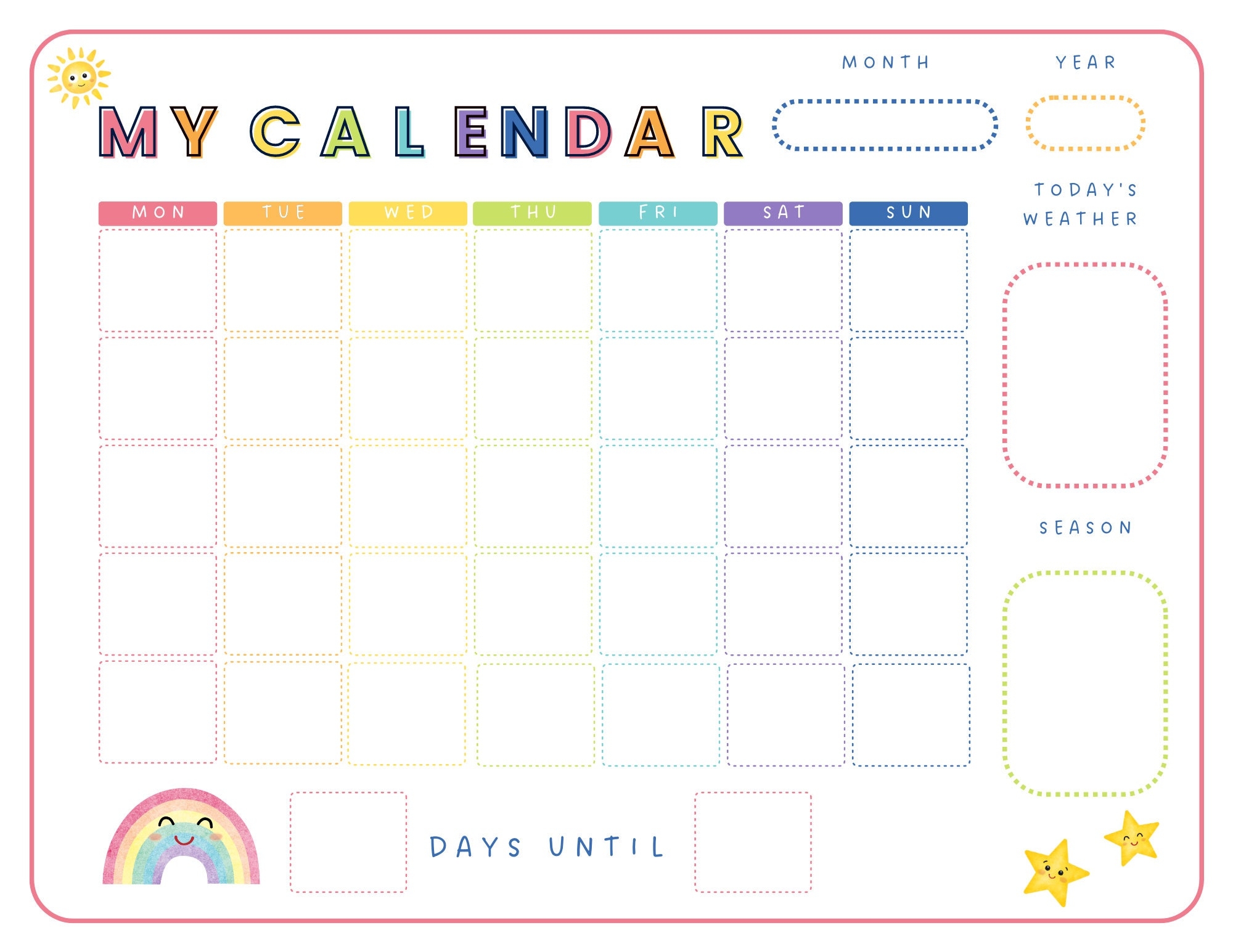 Printable Kids Blank Calendar