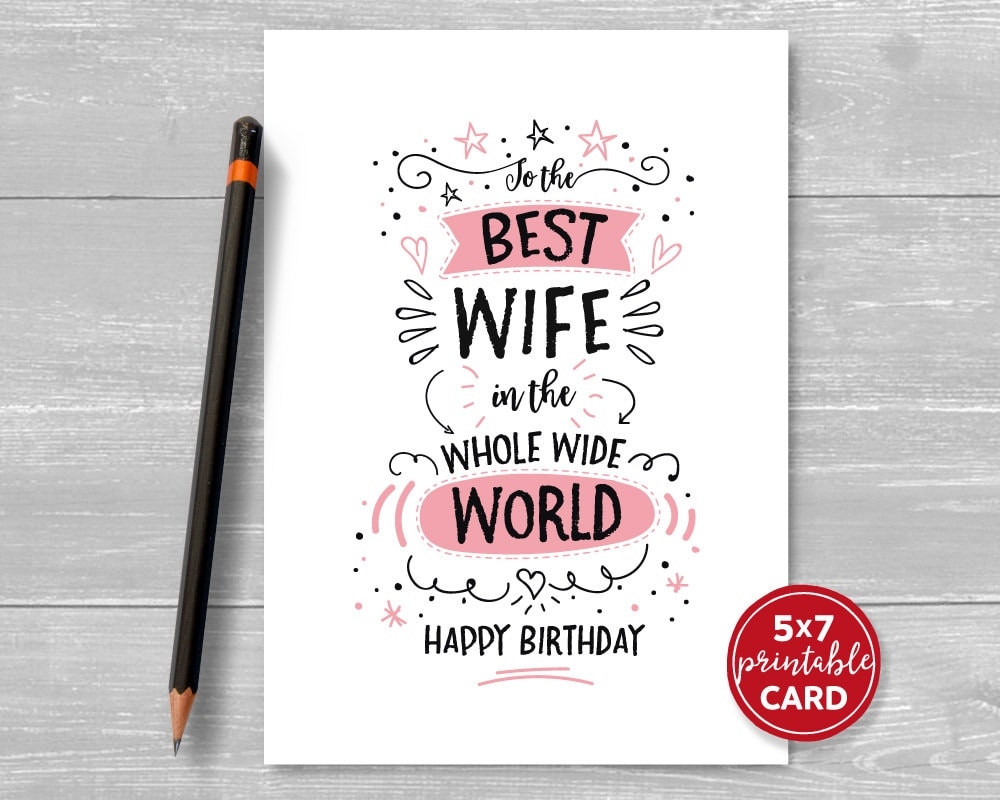 Printable Birthday Card For Wife To The Best Wife In The Whole Wide World Happy Birthday 5