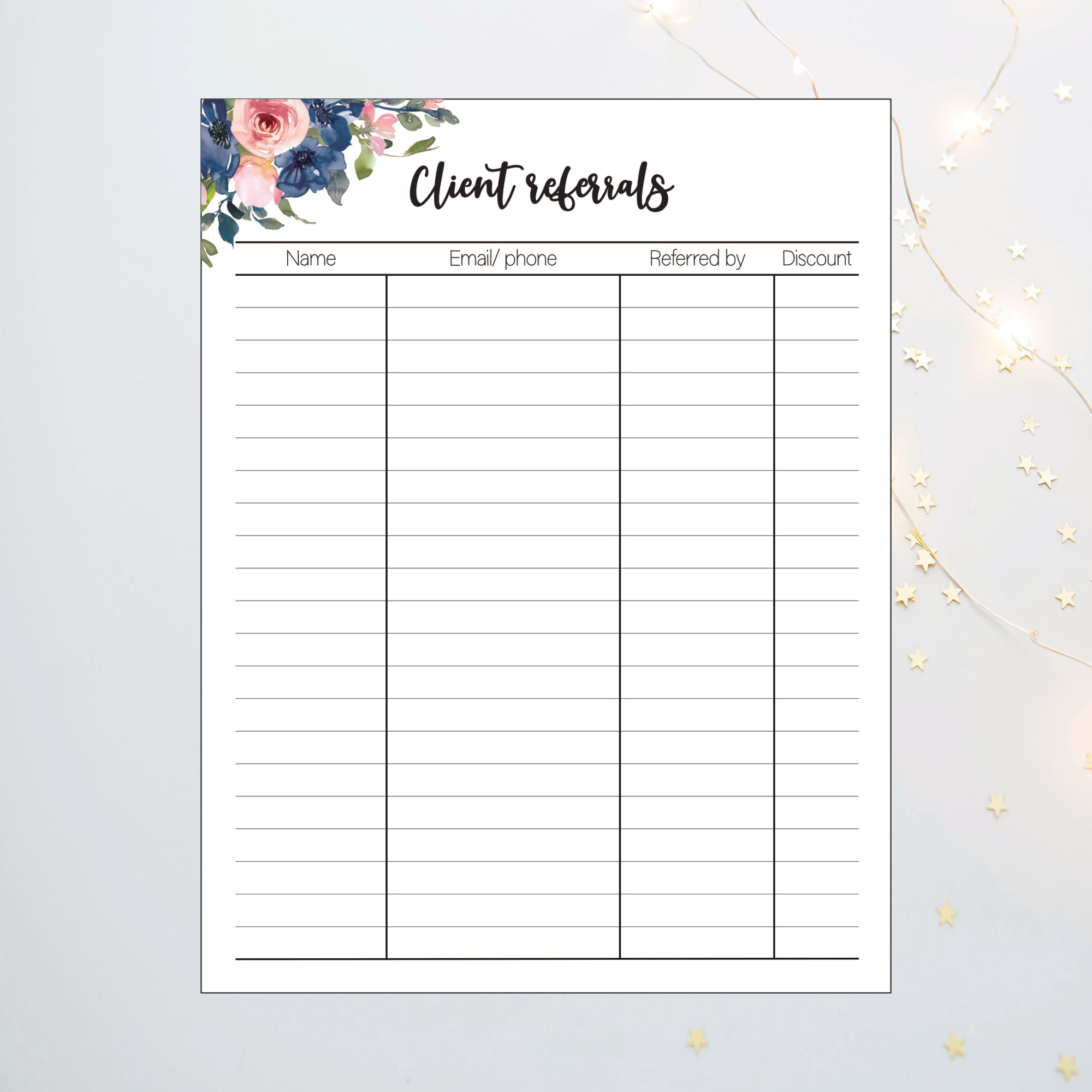 Referral Tracker Printable Client Referral Sheet Lead Tracker
