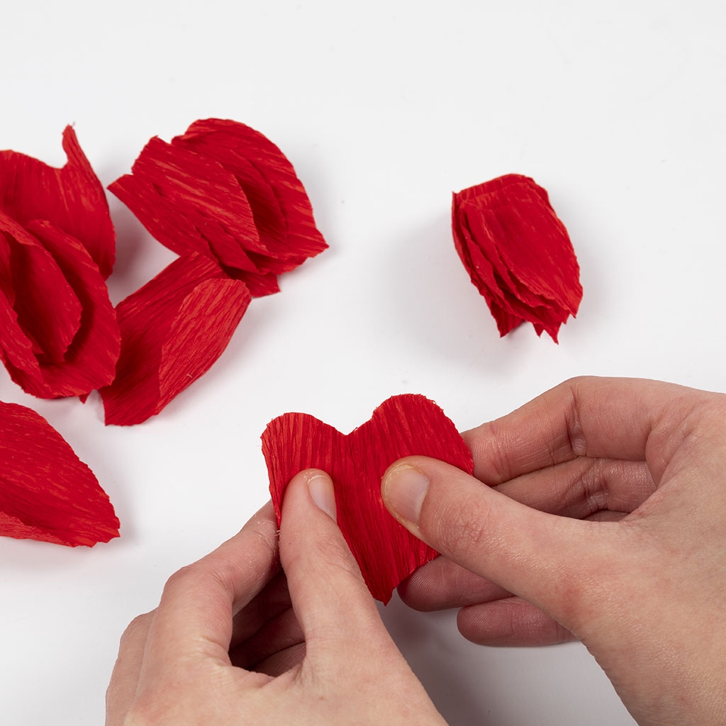 For a realistic look, gently stretch and shape each petal before gluing them together. Don’t forget to add some green crepe paper for the leaves and a stem to complete the look. The end result will be a stunning handmade rose that will last much longer than the real thing.