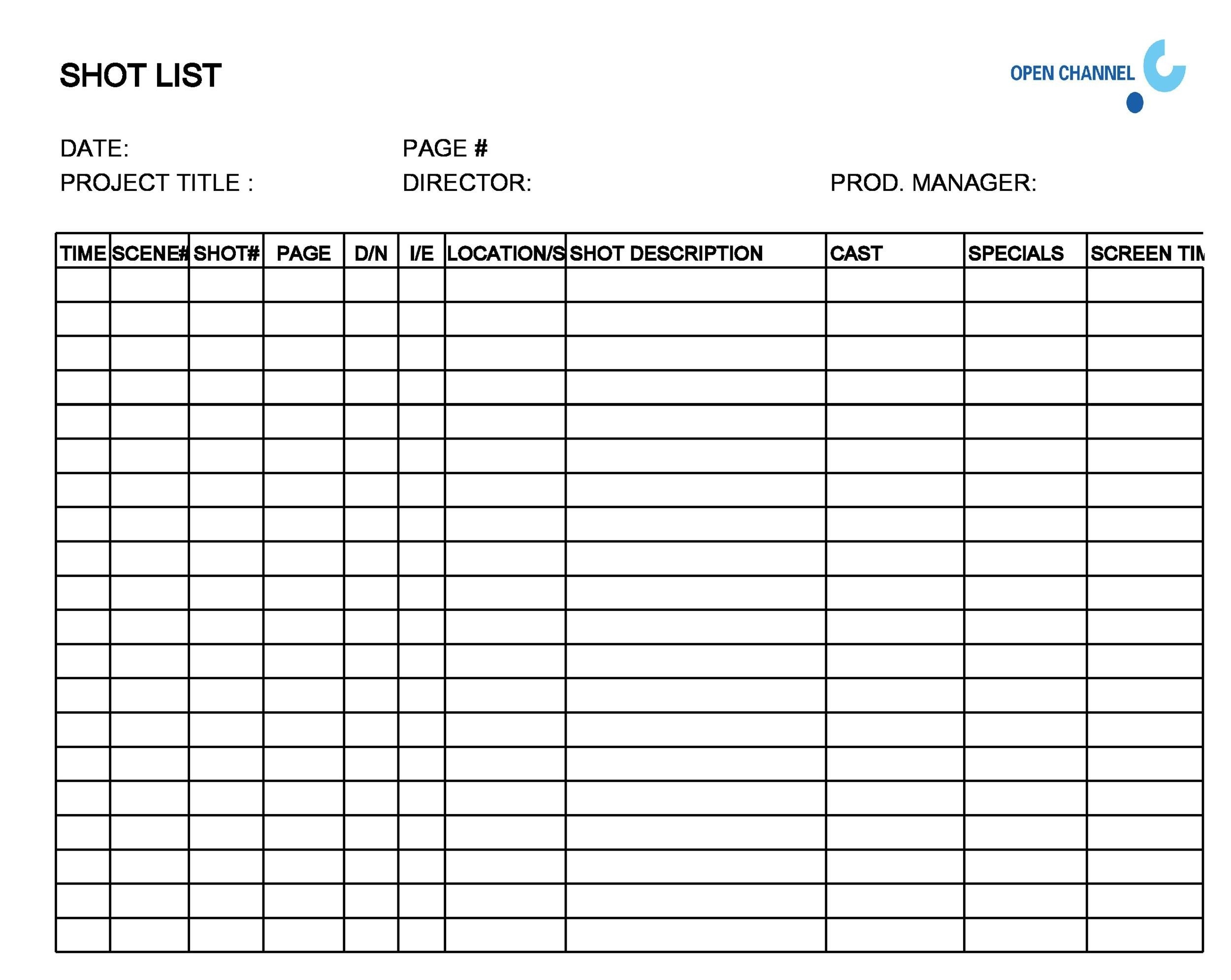 50 Handy Shot List Templates Film U0026 Photography TemplateLab
