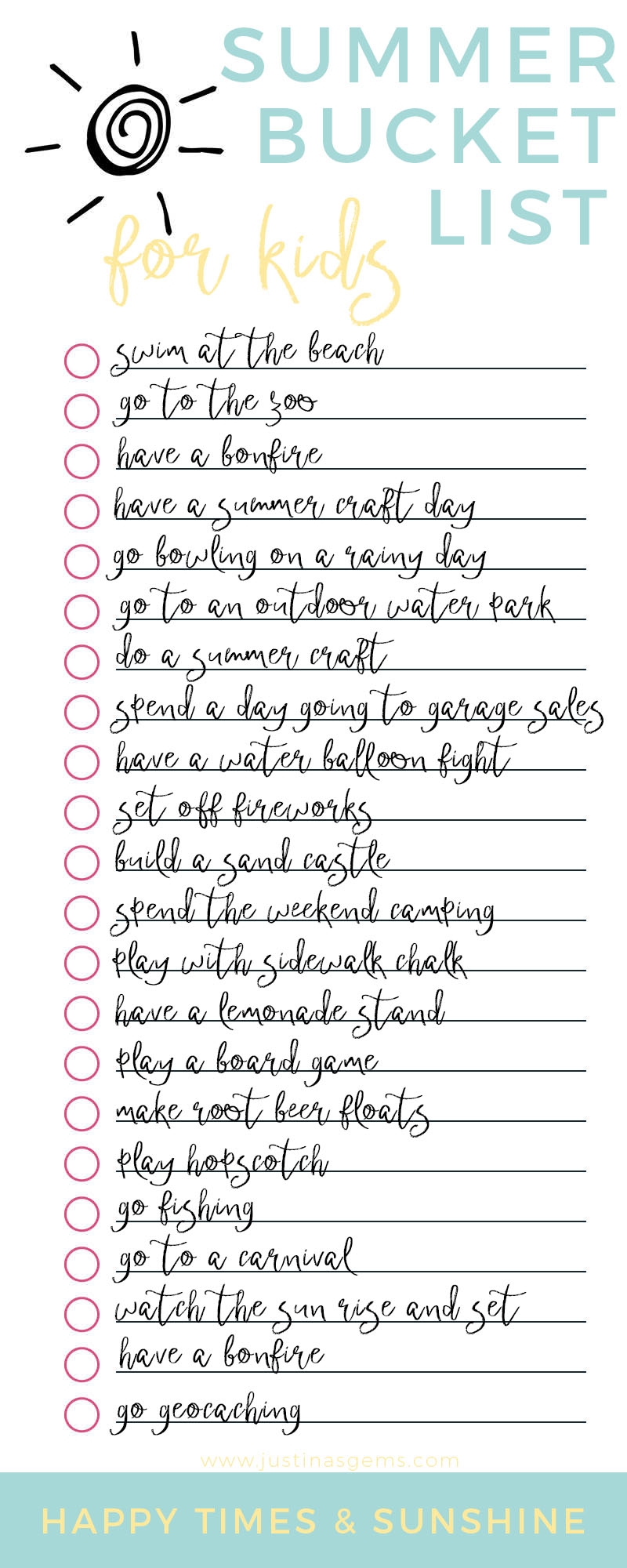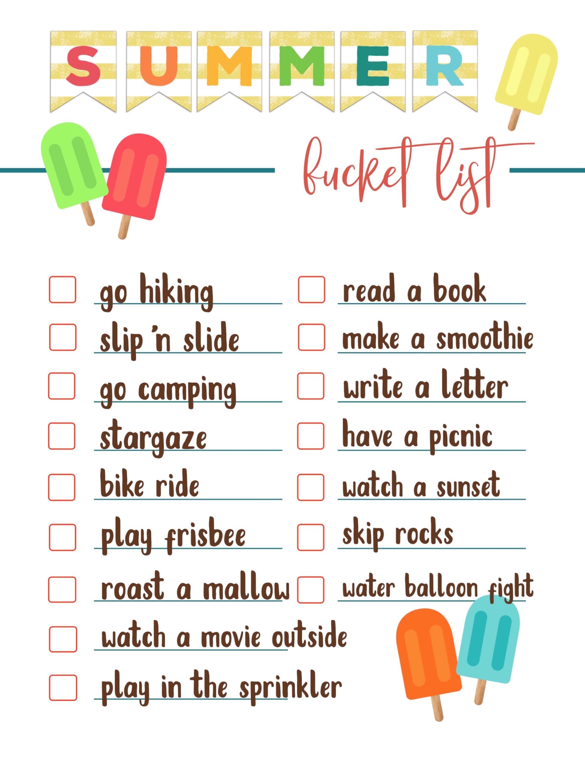 Free Printable Summer Bucket List Ideas Template Paper Trail Design