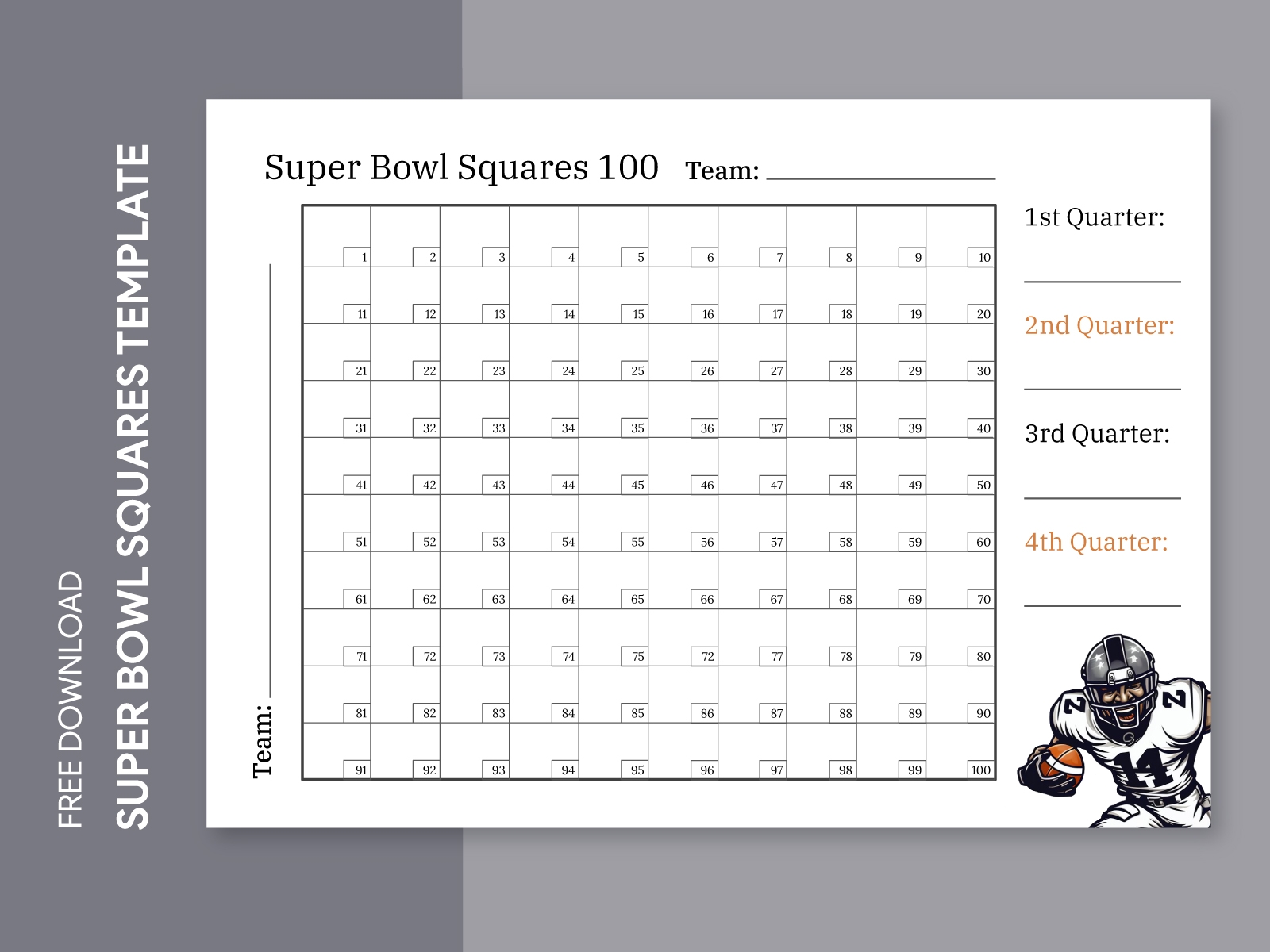 Free Printable Super Bowl Squares Template Play Party Plan