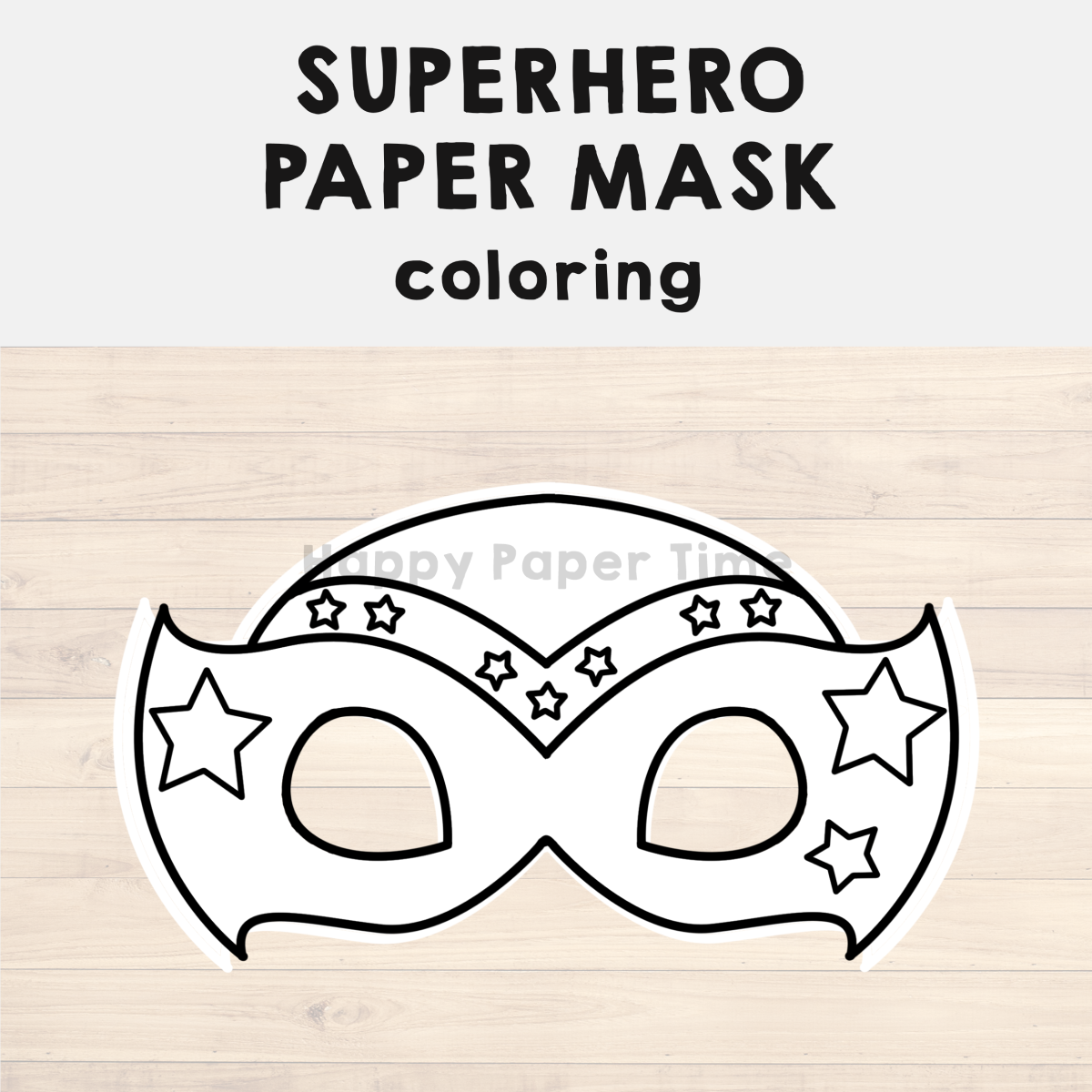 Superhero Paper Masks Printable Hero Coloring Craft Activity Costume Template