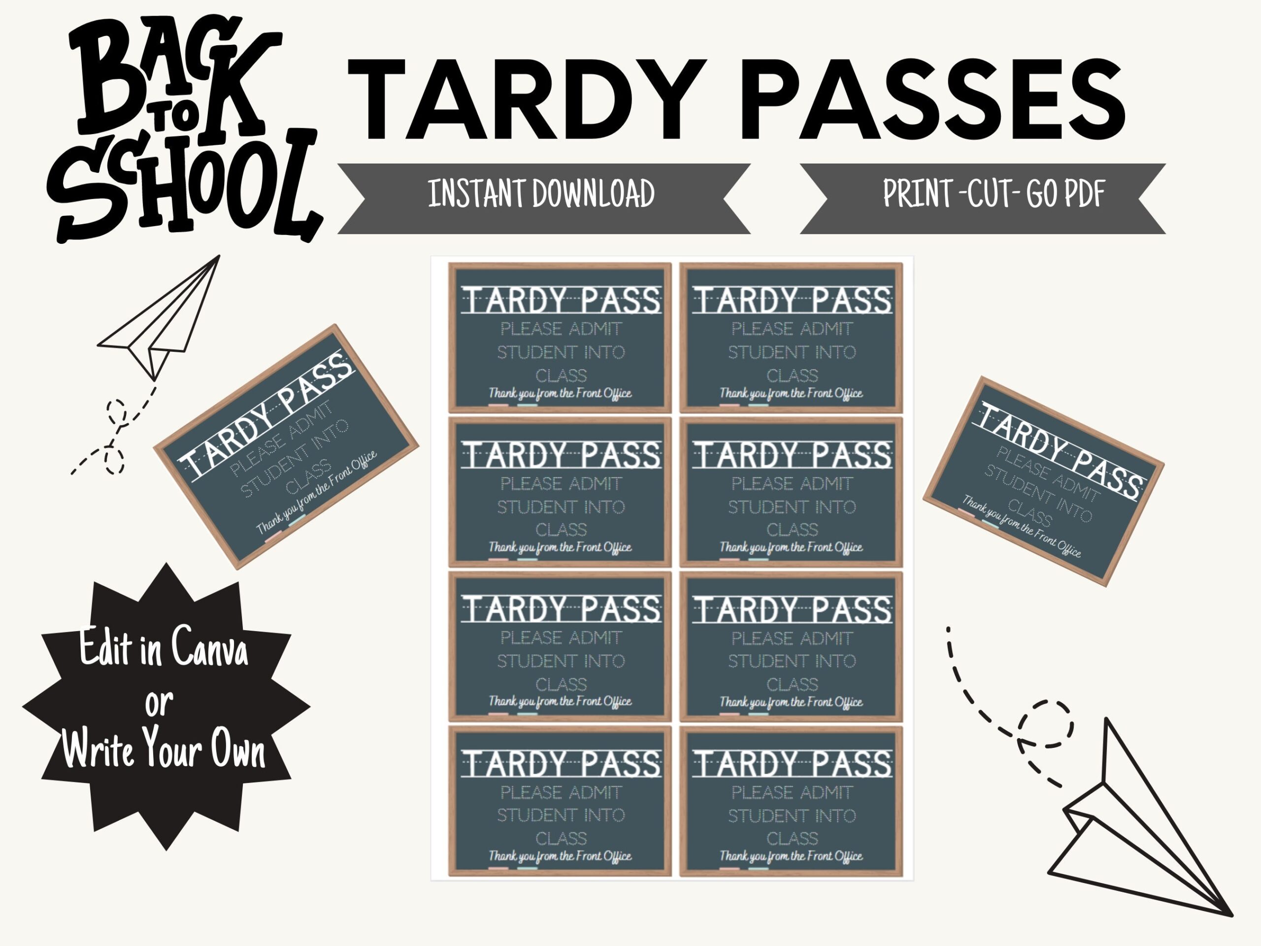 School Tardy Pass Printable Instant Download Late Pass Template Editable Tardy Pass Template Digital Download