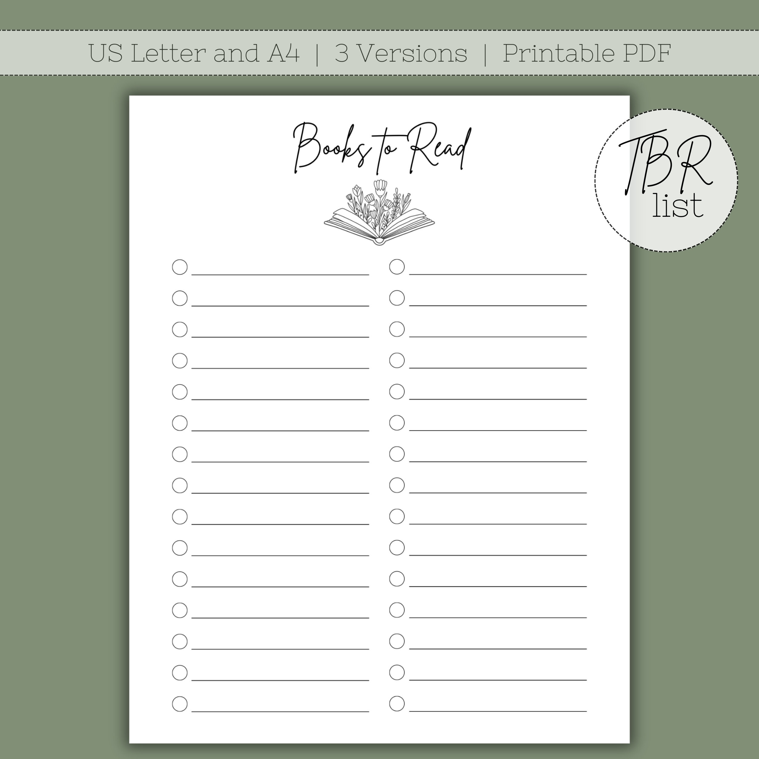 TBR List Reading Wishlist Books To Read Reading Tracker Instant Download PDF US Letter U0026 A4 Digital File