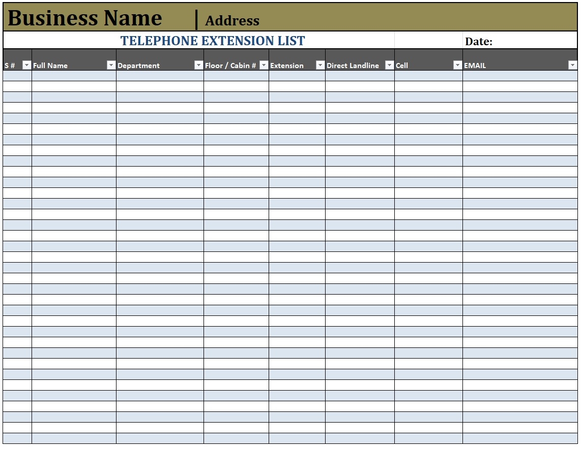 Phone Extension List Template Free List Templates