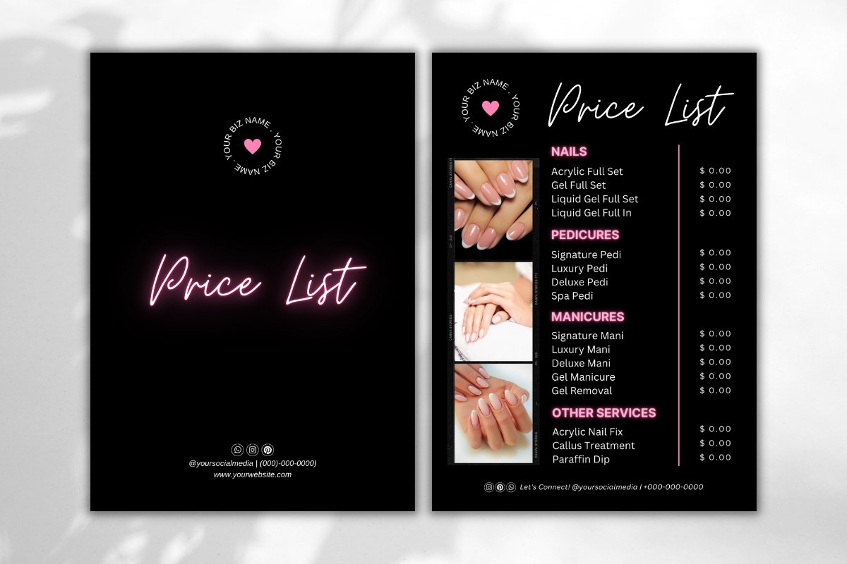 In conclusion, a well-designed template for your nail salon price list can help you attract new clients, retain existing ones, and boost your salon’s overall profitability. Take the time to create a visually appealing and informative price list that reflects the quality of your services and the professionalism of your salon.