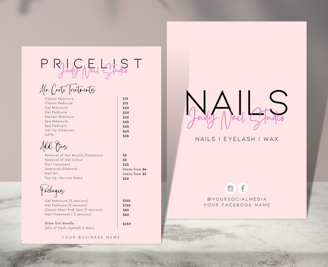 JUDY Nails Salon Price List Pre Made Templates Editable Printable Instant Beauty Nail Manicure Pricing Design Minimalist Hair Menu Etsy Israel