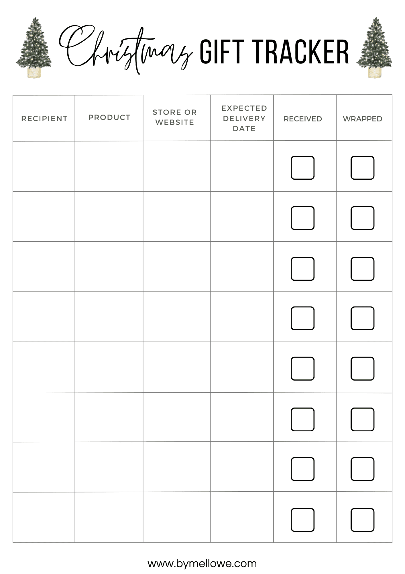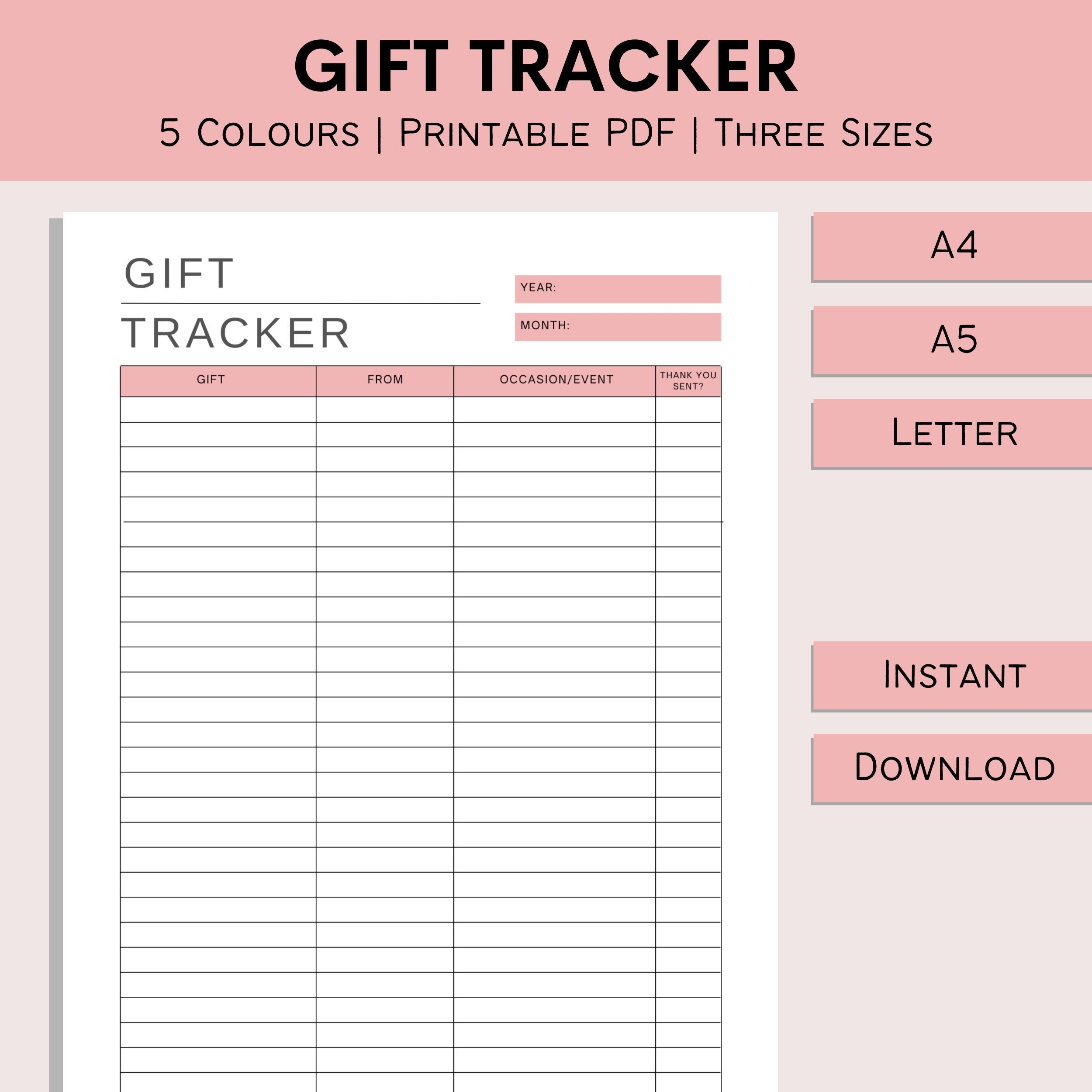 Template Free Printable Gift Tracker