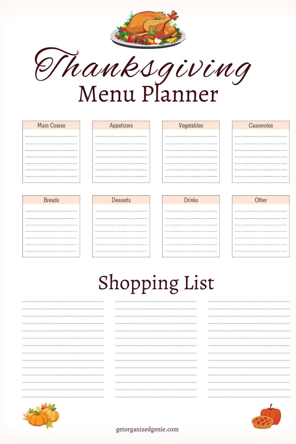 INSTANT DOWNLOAD Thanksgiving Menu And Shopping List Thanksgiving Meal Plan Shopping List Simple Thanksgiving Day Plan Etsy