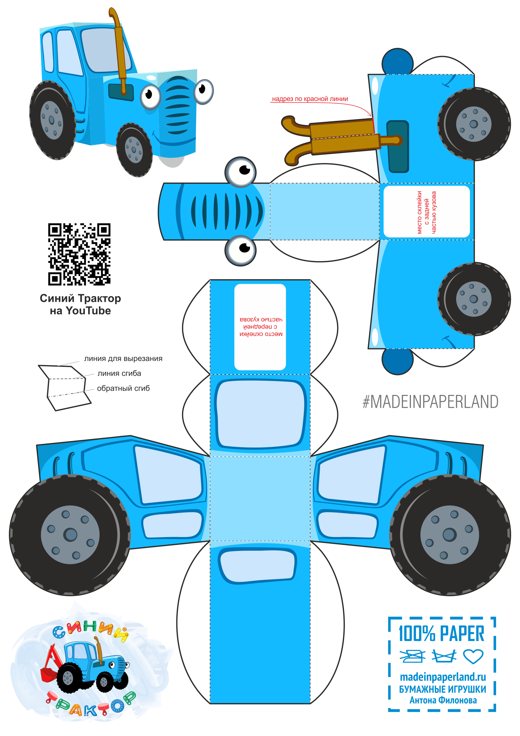 Blue Tractor Paper Model Free Printable Paper Models By Anton Filonov