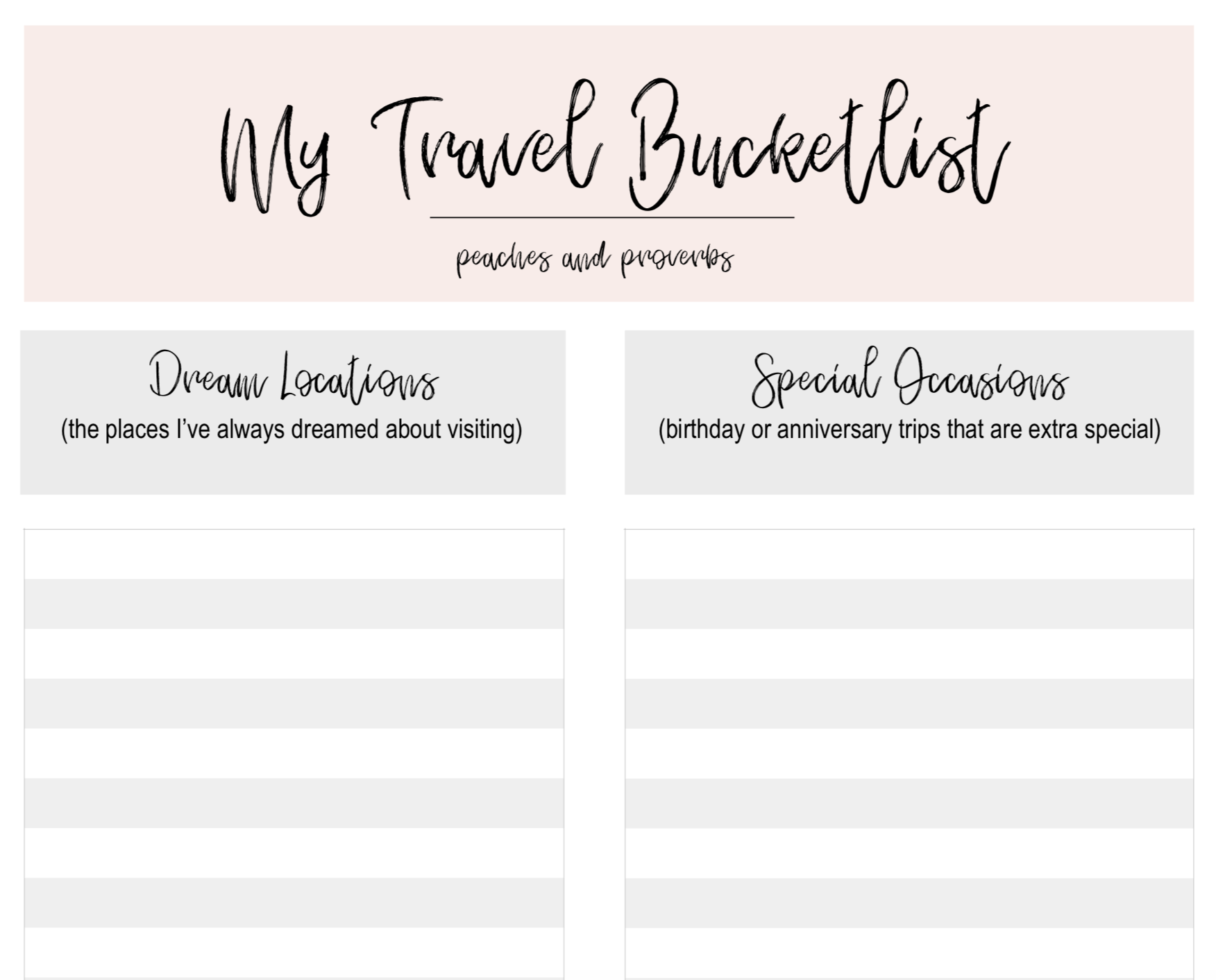 Making Your Travel Bucketlist With Free Printable Peaches And Proverbs