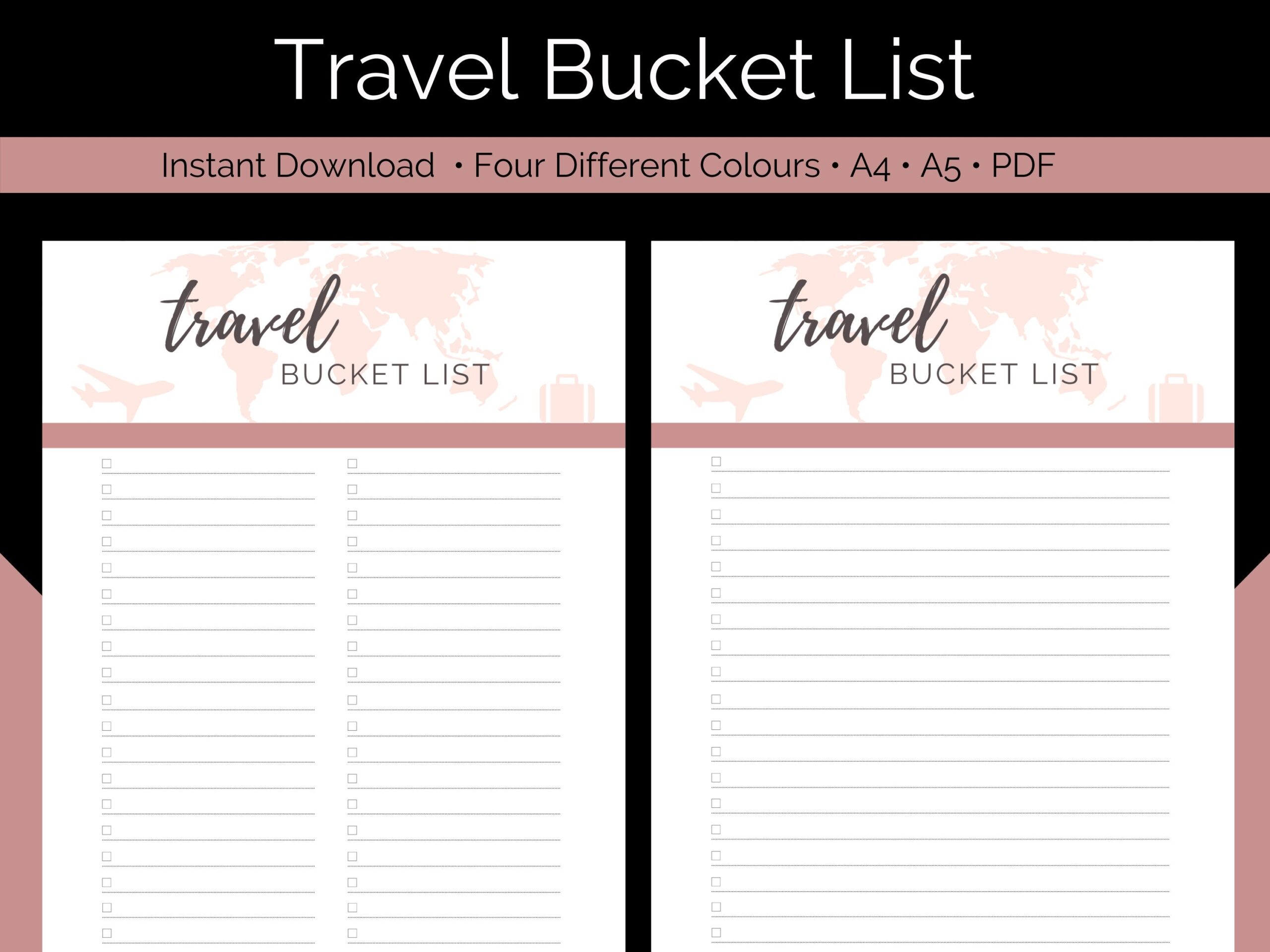 Travel Bucket List Bundle Blank Templates U0026 Travel Checklists Travel To Do List Letter Instant Download PDF Fillable Wishlist Etsy