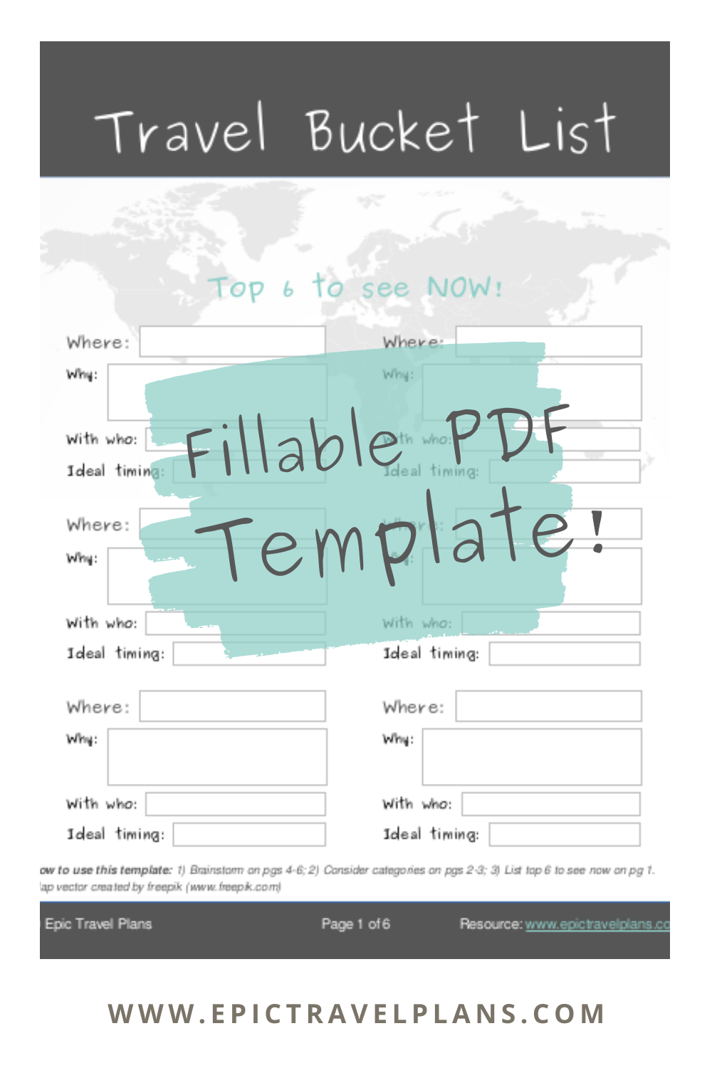 TRAVEL BUCKET LIST Template Guide Free Fillable PDF