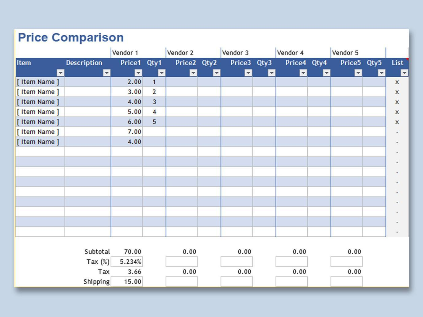 Vendor List Template