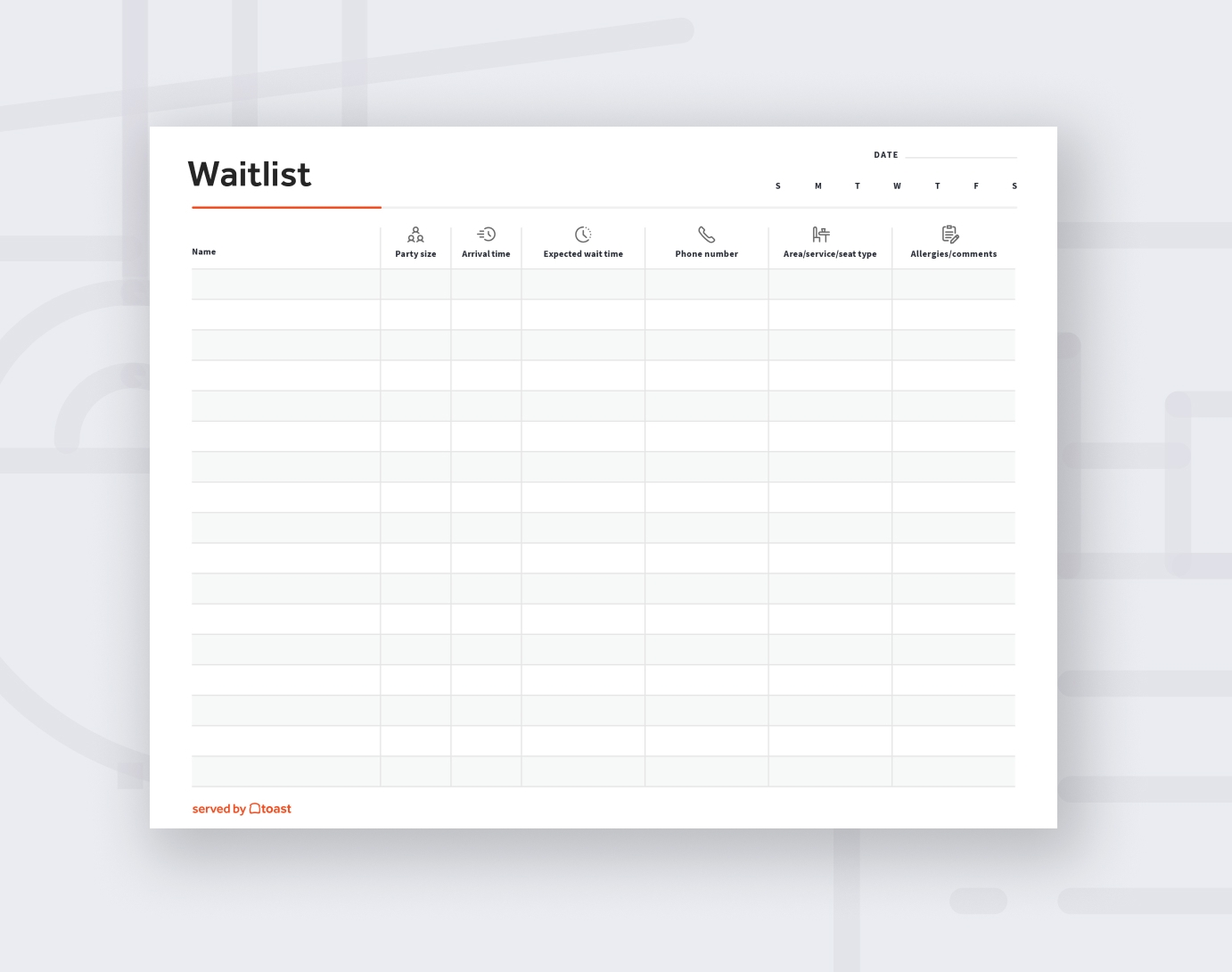 Restaurant Waitlist Template Toast POS
