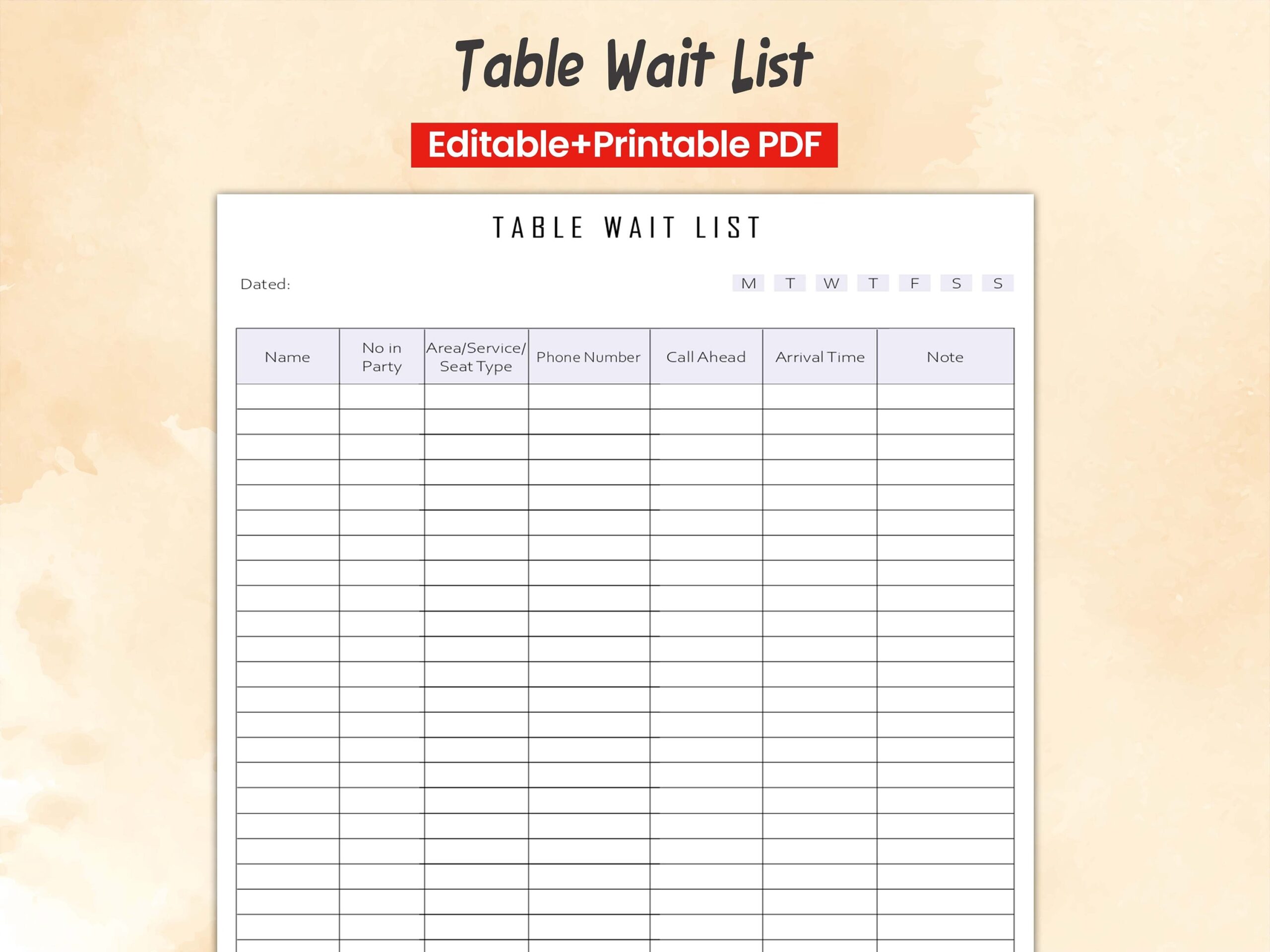 Editable Wait List Printable