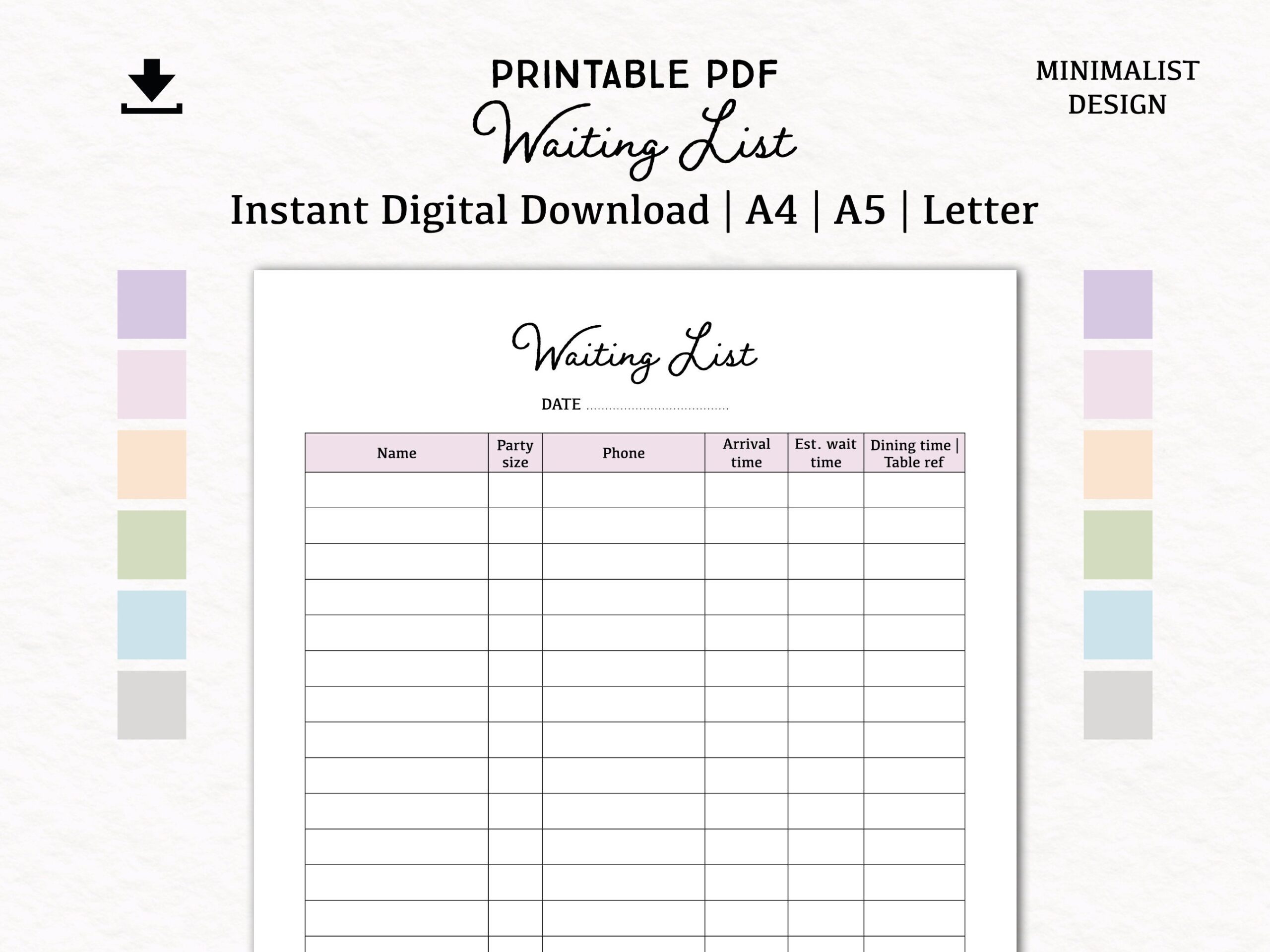Waiting List Digital Download PDF Printable A4 A5 Letter