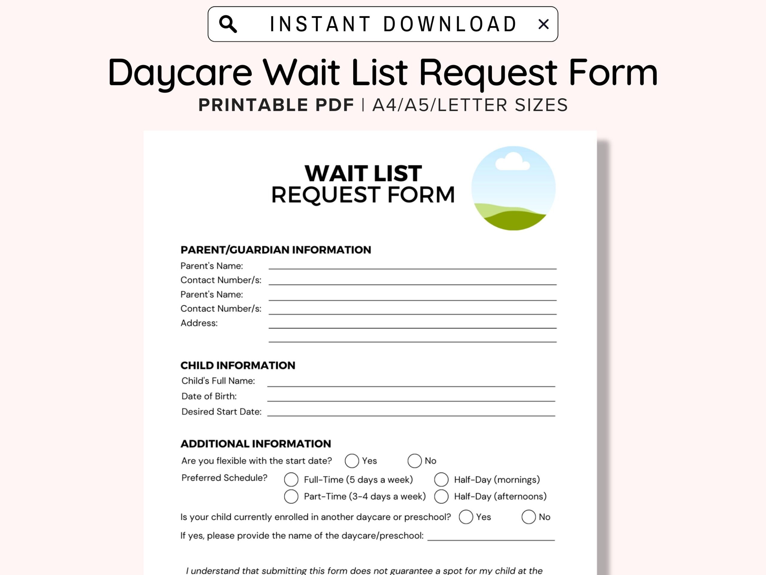 Waiting List Digital Download PDF Printable A4 A5 Letter