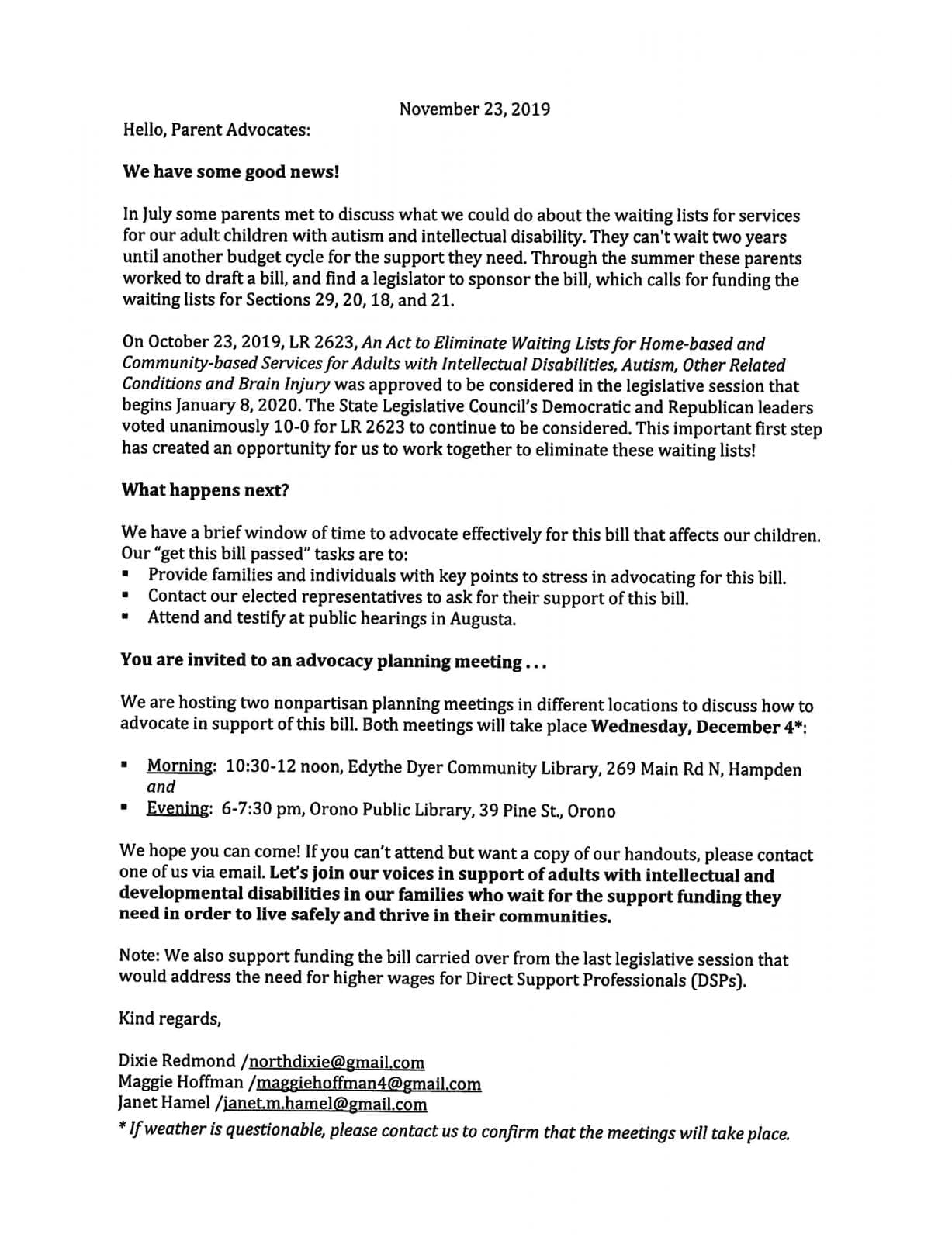 Waitlist Letter 2019 Downeast Horizons