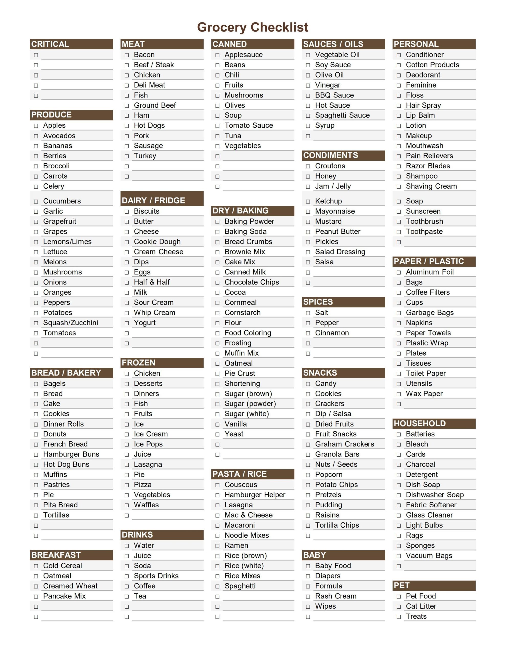 Walmart Grocery List 18 Free PDF Printables Printablee