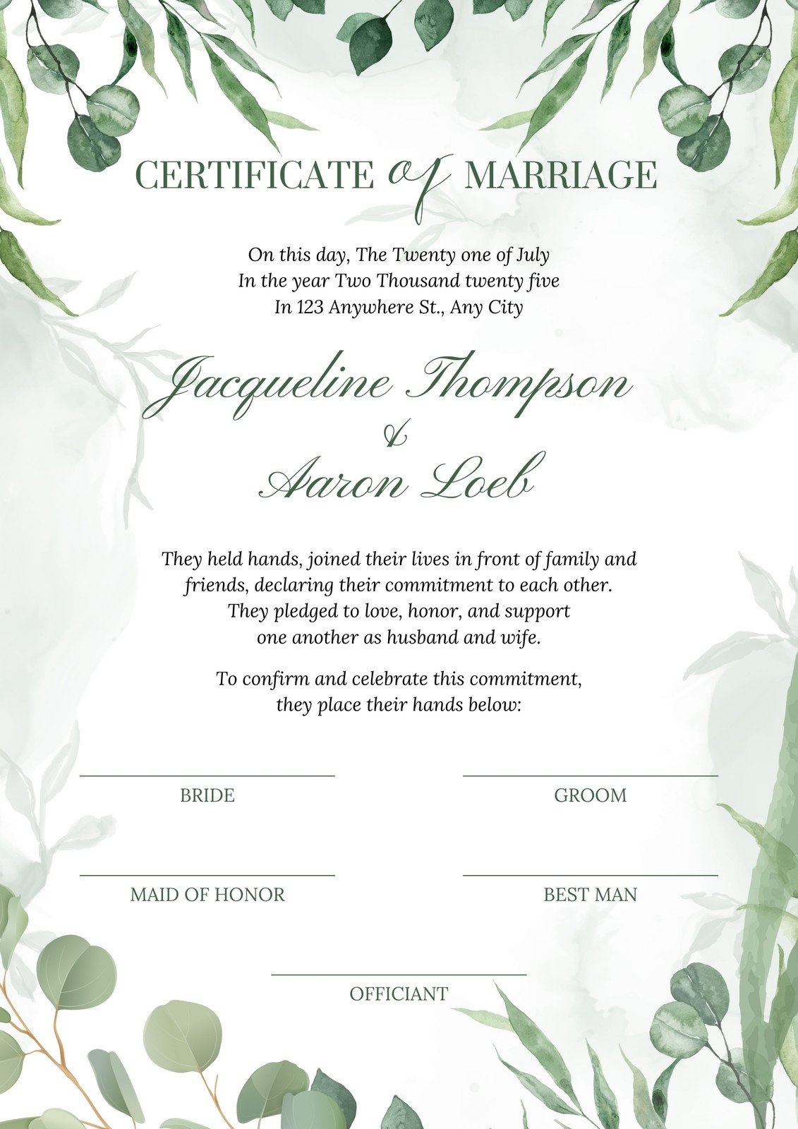 Some templates even allow you to add your own photos or change the colors to match your wedding theme. This personalization adds a special touch to your certificate and makes it truly unique to you and your partner.