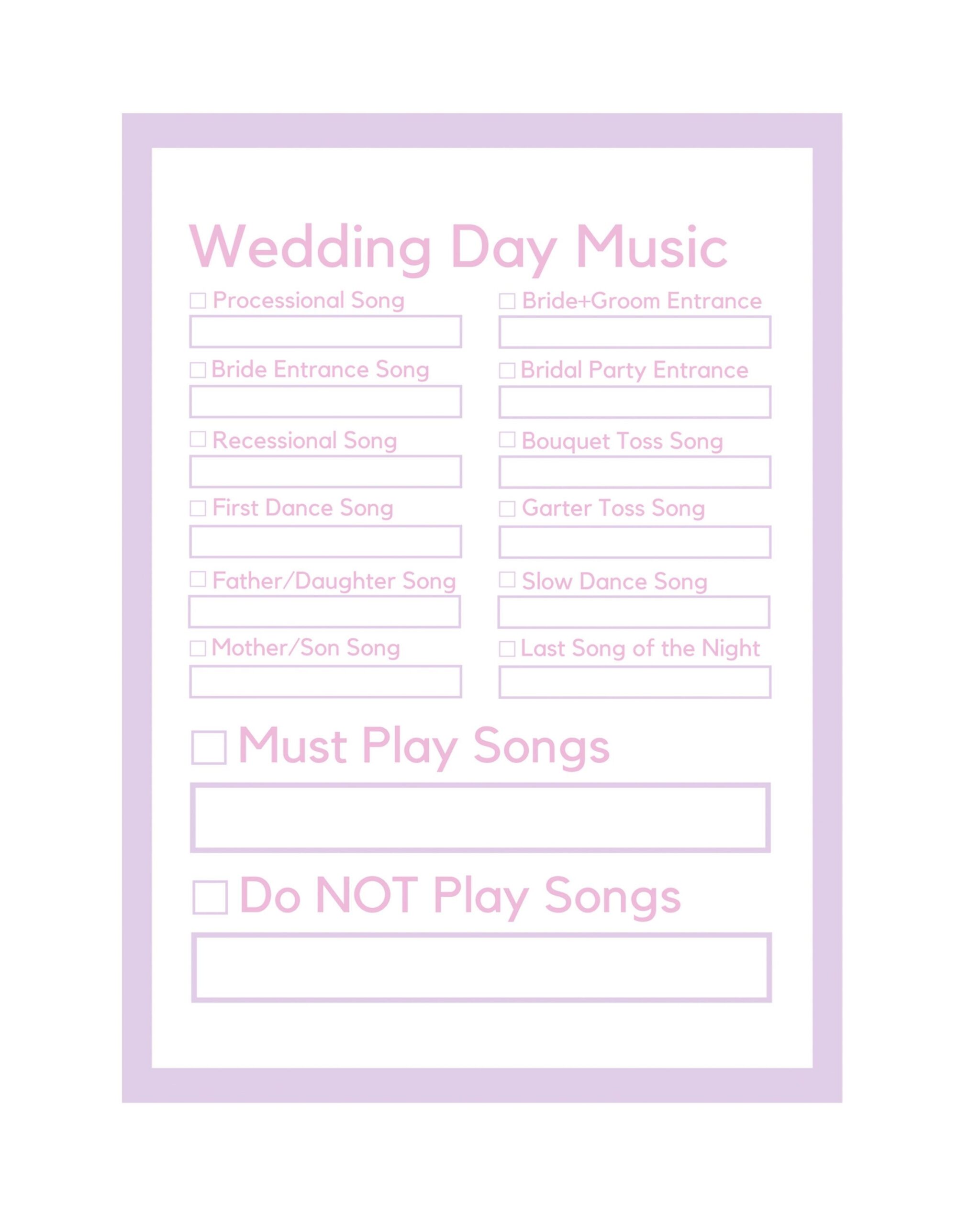 Wedding Music Checklist Template Wedding Planning Wedding Organization Wedding Printable Digital Download Flowers Floral Elegant Etsy