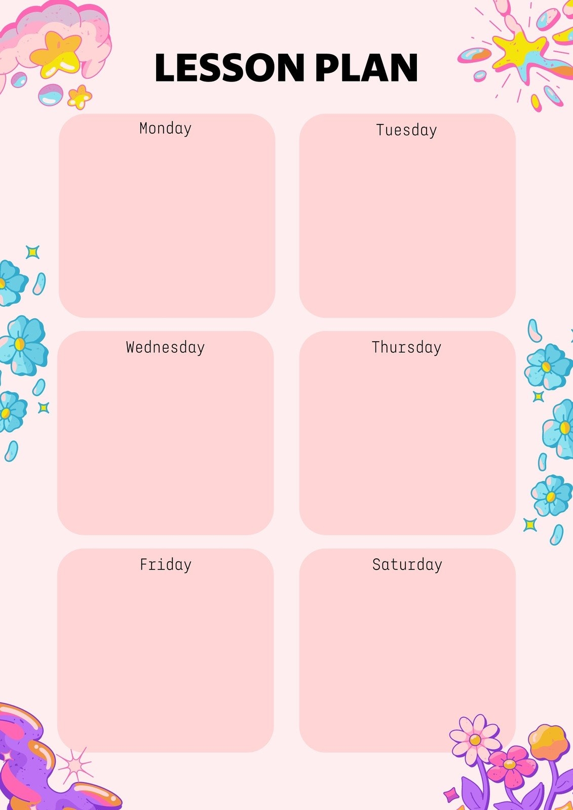 Stay organized and efficient with our weekly lesson plan template. Use it to track your progress, make adjustments as needed, and stay focused on your teaching goals. This template is designed to simplify your planning process and help you deliver engaging and effective lessons.